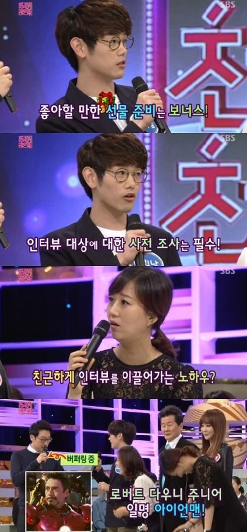 에릭 남은 23일 방송된 SBS 예능 프로그램 '도전천곡'에 출연해 "인터뷰하는 스타들에 대해 최대한 많이 알고 가려고 한다. 그리고 잘 어울릴 것 같은 선물을 하기도 한다"고 말했다.
