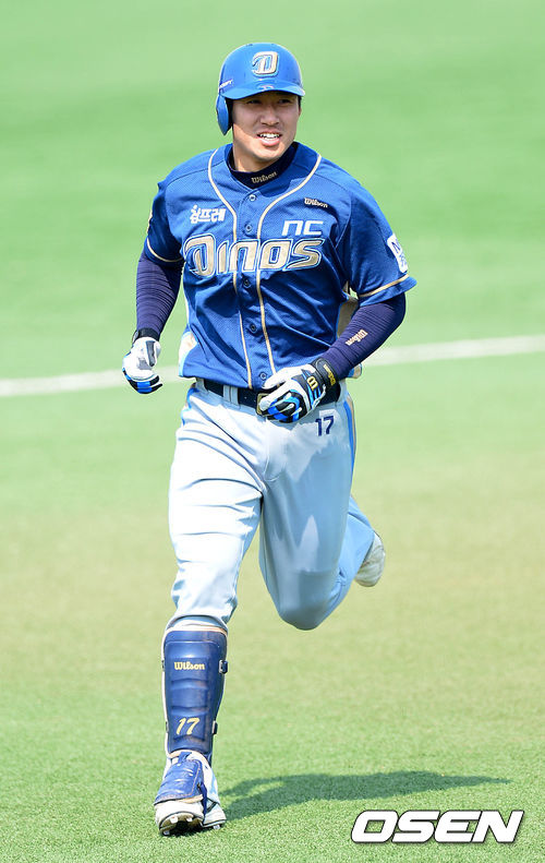 2회초 NC 공격 2사 1루 상황 조영훈이 선제 우월 투런포를 날리고 그라운드를 돌고 있다.