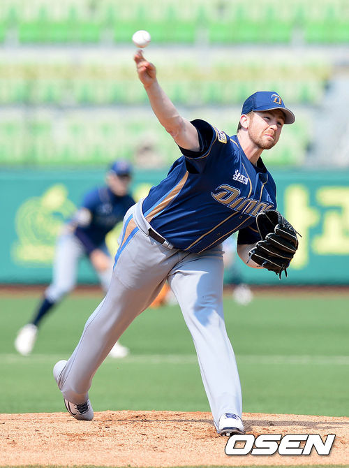 NC 선발 에릭이 힘차게 공을 뿌리고 있다.
