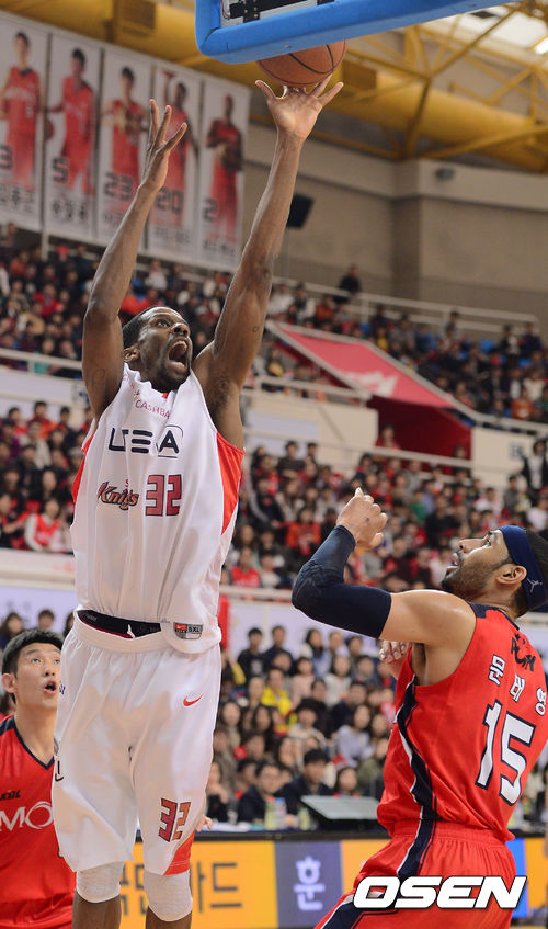 23일 오후 울산시 동천실내체육관서 열린 '2013-2014 KB국민카드 프로농구' 4강 플레이오프 1차전 울산 모비스와 서울 SK의 경기 2쿼터 SK 헤인즈가 골밑슛을 성공시키고 있다