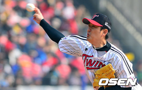 7회초 LG 김선우가 마운드에 올라 역투하고 있다.