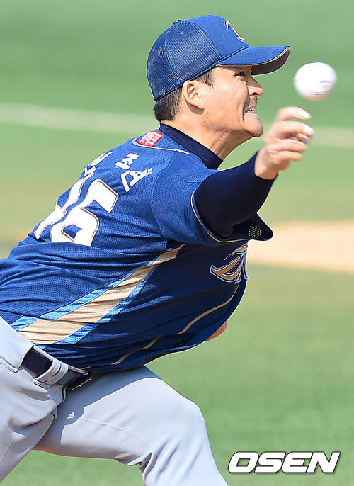 7회말 삼성 공격 마운드에 오른 NC 투수 원종현이 힘차게 공을 뿌리고 있다.