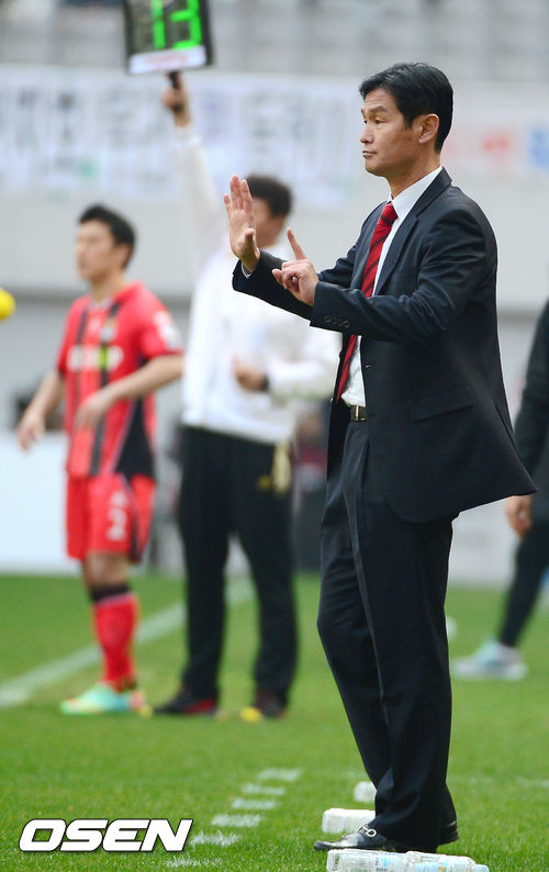 후반, 경기를 지켜보던 서울 최용수 감독이 선수들에게 작전을 지시하고 있다.