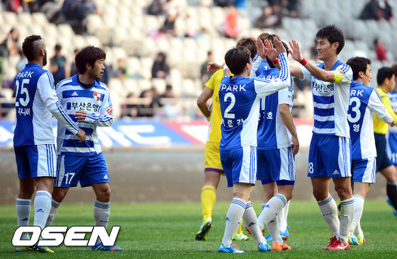 경기종료, 승리한 부산 아이파크 선수들이 기뻐하고 있다. /ouxou@osen.co.kr