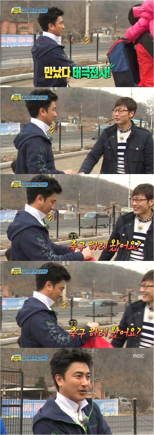송종국은 23일 방송된 MBC 예능프로그램 ‘일밤-아빠 어디가’에서 안정환을 보자 “축구하러 왔어요?”라고 놀려댔다.
