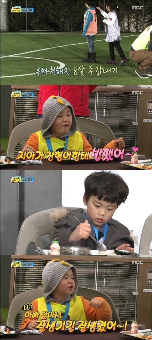 한편 스타와 스타 자녀들의 오지 여행기를 다루는 ‘아빠 어디가’는 현재 2기 멤버인 성동일·성빈, 김성주·김민율, 안정환·안리환, 류진·임찬형, 윤민수·윤후가 출연 중이다. 이날 방송은 ‘봄맞이 튼튼 캠프’라는 주제로 아이들이 체력 단련을 하는 모습이 담겼으며 1기에 출연했던 송종국·송지아가 함께 했다.
