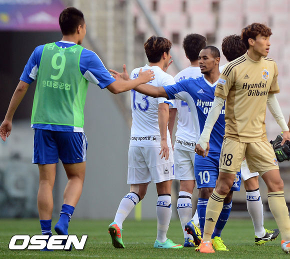 울산이 23일 울산 문수월드컵경기장서 열린 인천과의 현대오일뱅크 K리그 클래식 2014 경기서 김신욱, 한상운, 하피냐의 득점 릴레이에 힘입어 인천에 3-0으로 완승을 거뒀다.