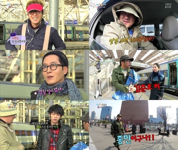 23일 오후 방송된 KBS 2TV 예능프로그램 '해피선데이-1박 2일'에서 멤버들은 여행에 앞서 봄 느낌이 나는 의상을 입고 모자와 안경만을 착용한 채 시민들에게 들키지 않고 서울역까지 도착하는 미션을 받았다. 스타가 거리에 나오면 촬영 할 수 없을 정도로 많은 인파가 몰리기 마련.
