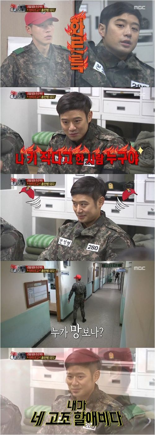 천정명은 23일 방송된 MBC 예능프로그램 ‘일밤-진짜 사나이’에서 ‘불꽃 조교’로 불리는 까마득한 조교 후배에게 계속 지적을 당했다. 자신이 현역으로 복무했던 부대에 입소한 그는 초반 조교에게 계속 지적을 당해야 했다. 하지만 분위기가 익숙해진 후에는 악마 조교다운 면목을 보여줬다.