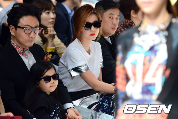 23일 오후 서울 동대문 디자인 플라자에서 열린 '2014 F/W 서울패션위크 박윤희 컬렉션'을 찾은 이윤미 주영훈 부부와 딸이 패션쇼를 관람하고 있다.