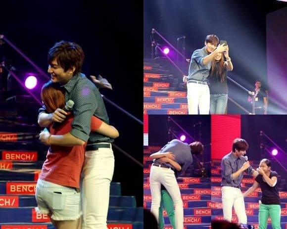 한 팬은 드라마 ‘상속자들’의 패러디로 이민호에게 특별한 의미가 담긴 포옹을 요청했고 이민호는 팬을 진하게 안아줬다. 이뿐 안라 이민호는 팬들과 함께 휴대폰으로 사진을 찍는 등 팬들과의 거리를 더욱 좁혔다.