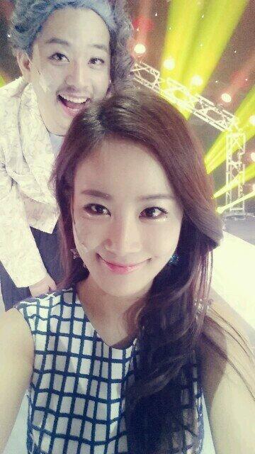 개그우먼 김지민이 무대 오르기 전 여유 있는 모습으로 개그맨 김준호와 찍은 사진을 공개했다.