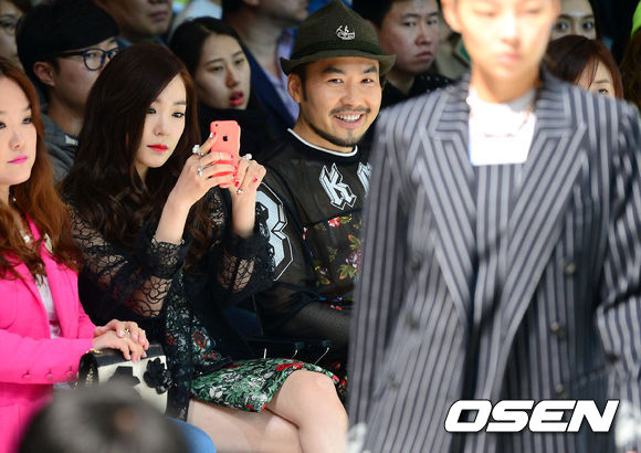24일 오후 서울 동대문 디자인 플라자에서 열린 '2014 F/W 서울패션위크 스티브J&요니P 컬렉션'에 참석한 티파니 노홍철이 패션쇼 관람을 하고 있다.