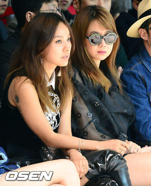 24일 오후 서울 동대문 디자인 플라자에서 열린 '2014 F/W 서울패션위크 스티브J&요니P 컬렉션'에 참석한 이효리와 공효진이 패션쇼 관람을 하고 있다.