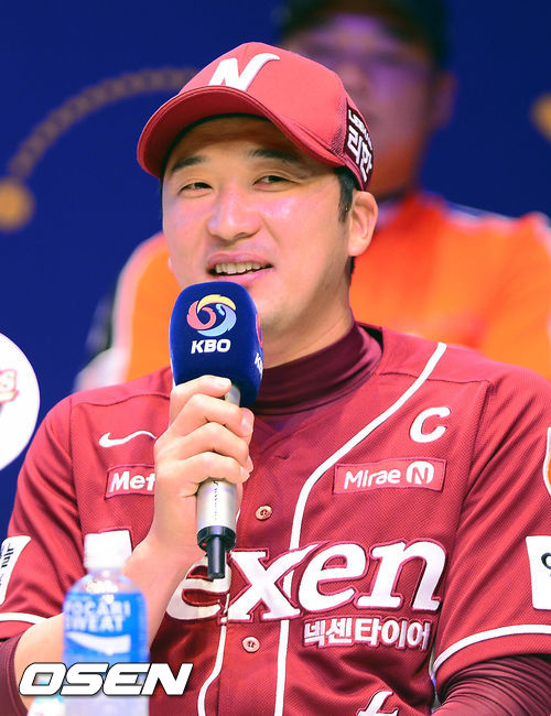 24일 오후 서울 이화여대 ECC 삼성홀에서 대현동 2014 한국야쿠르트 세븐 프로야구 미디어데이가 열렸다. 넥센 이택근이 출사표를 던지고 있다.