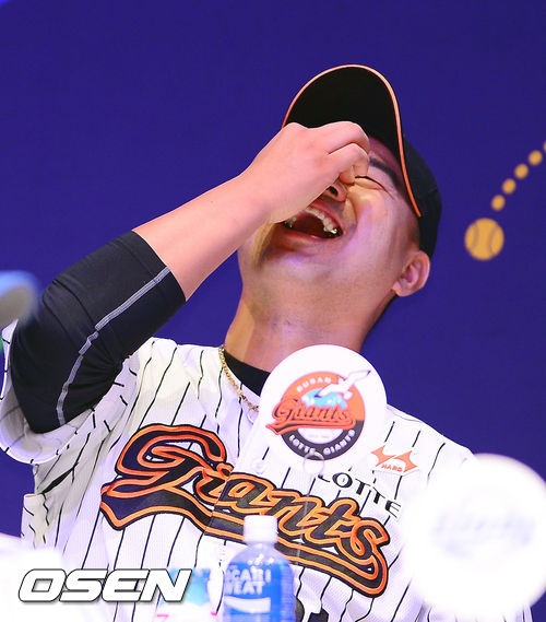 24일 오후 서울 이화여대 ECC 삼성홀에서 대현동 2014 한국야쿠르트 세븐 프로야구 미디어데이가 열렸다. 롯데 송승준이 환하게 웃고 있다.