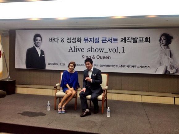공개된 사진 속에는 바다와 정성화가 나란히 앉아서 인터뷰를 하고 있는 모습이 담겨 있다. 두 사람 뒤로 '바다 & 정성화 뮤지컬 콘서트 제작발표회 어라이브 쇼 볼륨.1 (Alive show_vol.1)' 이라고 쓰여진 현수막이 눈길을 끈다.