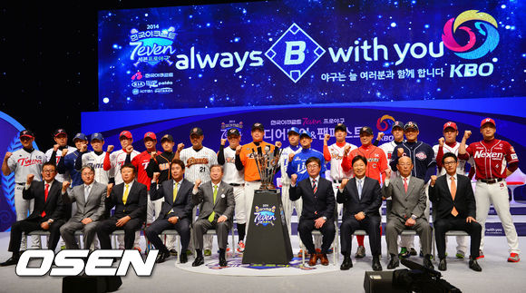 24일 오후 서울 이화여대 ECC 삼성홀에서 대현동 2014 한국야쿠르트 세븐 프로야구 미디어데이가 열렸다. 미디어데이가 끝난 후 포토타임이 진행되고 있다.