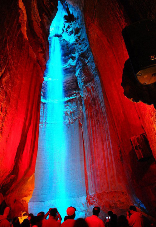 지하 340m 땅속 폭포 사진 속 폭포는 '루비 폴스(Ruby Falls)'로 폭포의 이름은 발견자의 부인에게 따온 것으로 전해졌다. 지하 340m 땅속 폭포는 수직으로 땅을 향해 떨어진다. 폭포 물줄기는 약 45m에 이른다.