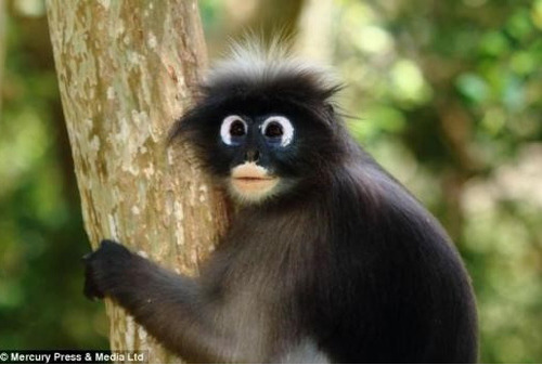 영국 데일리메일은 동남아 타이 펫차부리에 있는 깽까찬 국립공원에 사는 더스키 랑구르, 일명 안경 원숭이를 포착해 소개했다.