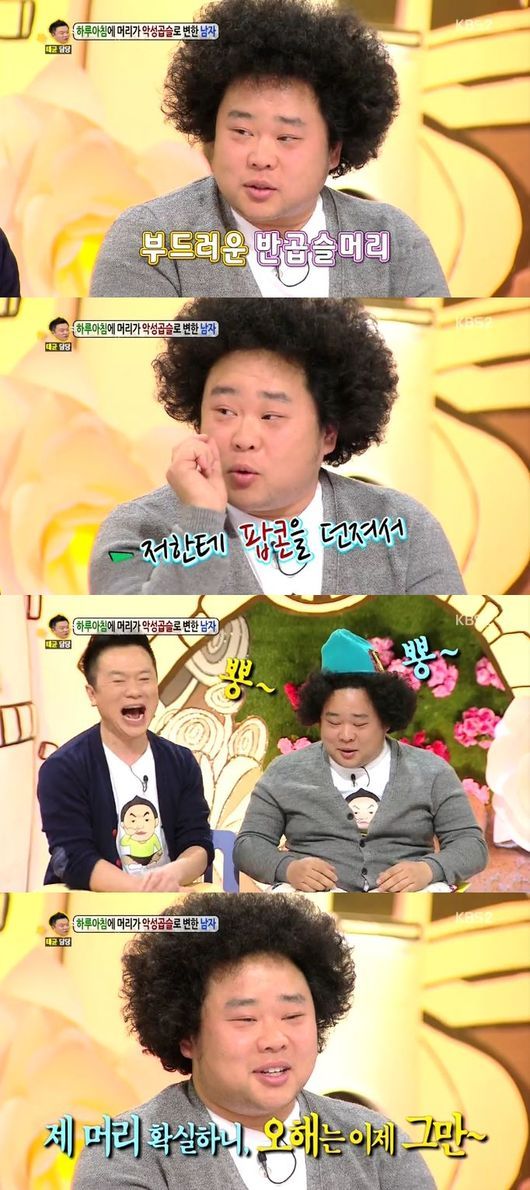 개그맨 송영길이 하루아침에 머리가 악성 곱슬로 변해버려 고민이라고 밝혔다.