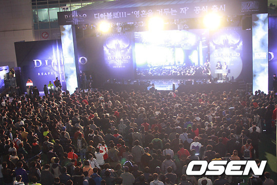 2012년 5월 출시 당시 서울 왕십리에서 진행된 디아블로3 출시 행사에는 현장에서 선착순으로 판매한 소장판을 구매하기 위해 5000여 명의 팬들이 행사 전날부터 줄을 서며 큰 화제가 된 바 있으며 디아블로3는 PC방에서 39% 이상의 사상 유례없는 점유율을 달성하며 PC 게임 출시 역사를 새로 쓰기도 했다. 당시 아시아 서버 최고 동시접속자수는 64만명에 달했으며 국내 이용자는 43만명 이상을 달성했다.
