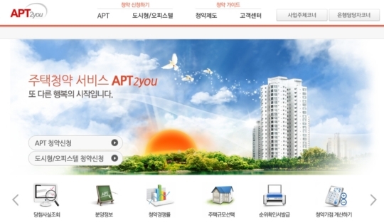'아파트투유'는 아파트, 오피스텔 등 신규 주택에 대한 청약을 신청할 수 있는 사이트로 공인인증서만 있으면 간편하게 아파트 청약이 가능해 많은 무주택자들에게 인기를 끌고 있다.