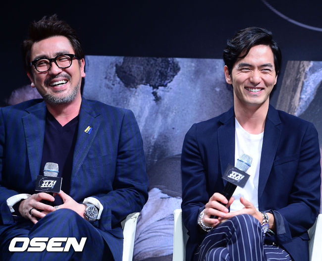 25일 오전 서울 강남구 신사동 CGV 압구정에서 열린 영화 '표적'(창감독 연출)의 제작발표회에서 류승룡과 이진욱이 환하게 웃고 있다.