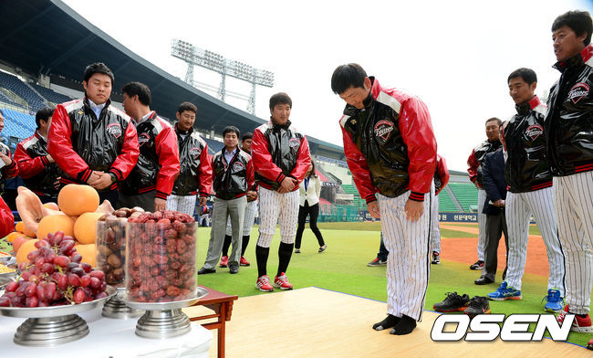 25일 오전 서울 잠실구장에서 LG 트윈스의 2014시즌 승리기원 및 무사안녕 기원제가 열렸다.