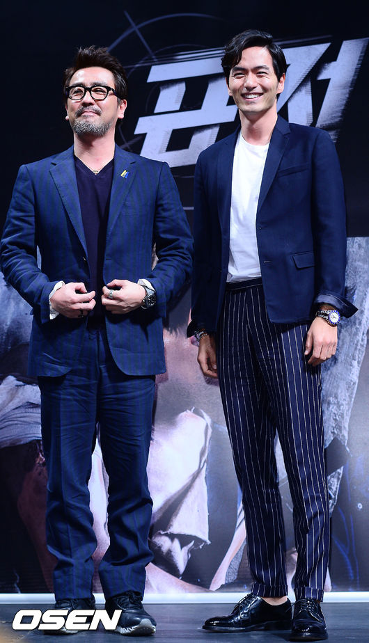 25일 오전 서울 강남구 신사동 CGV 압구정에서 열린 영화 '표적'(창감독 연출)의 제작발표회에서 류승룡과 이진욱이 포토타임을 갖고 있다.