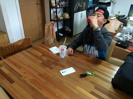 공개된 사진 속 개리는 테이블에 혼자 앉아 감자튀김 상자를 들고 있다. 음료수 마시듯 감자튀김을 들이키는 듯한 포즈가 웃음을 자아낸다.