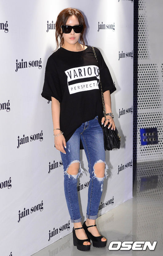 25일 오후 서울 동대문 디자인 플라자에서 열린 '2014 F/W 서울패션위크' 송자인 컬렉션에 참석한 티아라 효민이 포토타임을 갖고 있다.