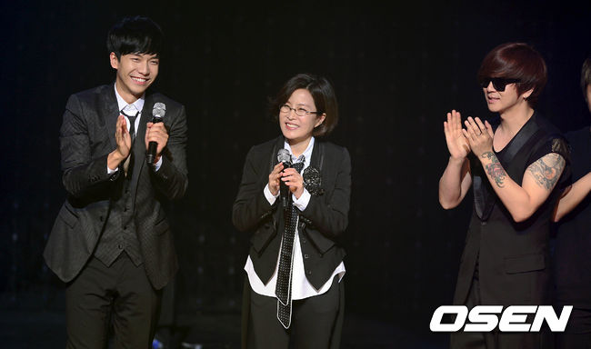 가수 이선희가 이승기 윤도현과 관객을 향해 인사를 나누고 있다.