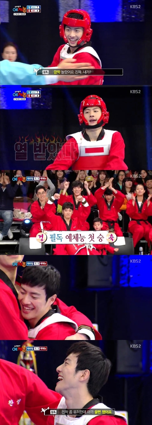 하지만 안면부 강타로 열받은 필독은 상대 선수에 무차별 공격을 퍼부은 끝에 결국 역전승했다. ‘예체능’에서 거둔 필독의 귀중한 첫 승에 찬성은 달려나와 동생을 꼭 껴안으며 축하했다.