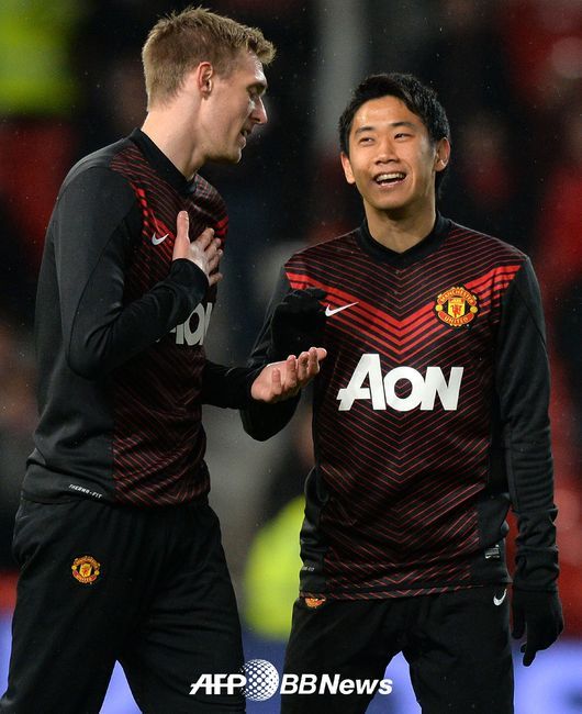 [OSEN=스포츠부] 가가와 신지(25)가 경기 전 몸을 풀면서 대런 플레처(30)와 대화를 하고 있다.