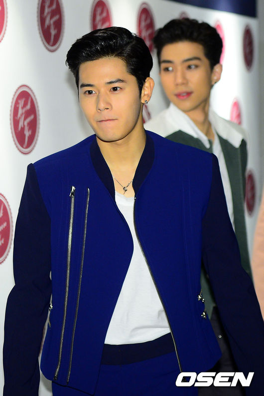 26일 오후 서울 동대문 디자인 플라자에서 열린 '2014 F/W 서울패션위크' 곽현주컬렉션에 참석한 제국의 아이들 동준이 포토타임을 갖고 있다.