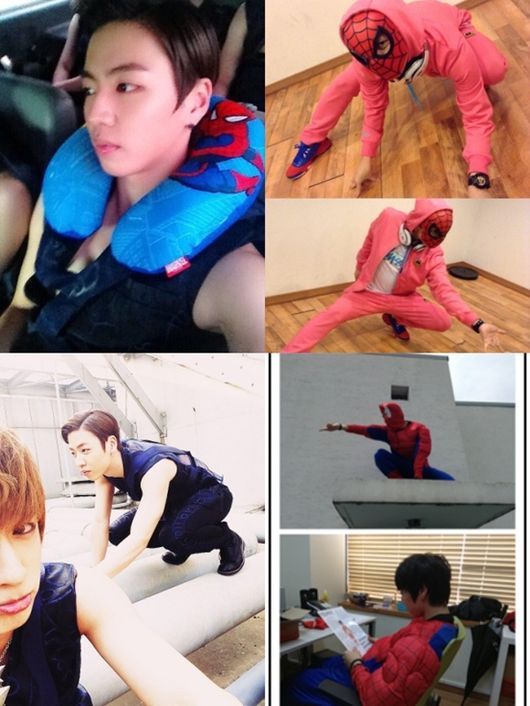 그룹 백퍼센트 찬용의 스파이더맨 의상 모음 사진이 공개됐다.
