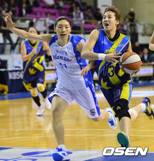 4쿼터, 신한은행 김단비가 우리은행 임영희의 수비를 받으며 돌파를 시도하고 있다.