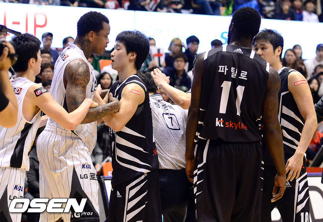 3쿼터, LG 제퍼슨과 KT 조성민의 충돌 이후 판정 의견이 엇갈리고 있다.