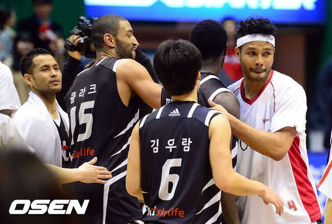 경기종료, 승리한 LG 문태종이 KT 선수들과 인사를 나누고 있다. /ouxou@osen.co.kr