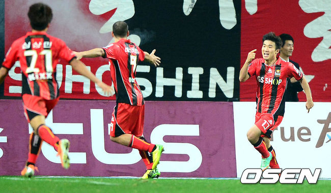 26일 오후 서울 월드컵경기장에서 열린 '현대오일뱅크 K리그 클래식 2014' FC 서울과 제주 유나이티드의 경기 후반 고요한이 첫 골을 넣고 기뻐하고 있다.