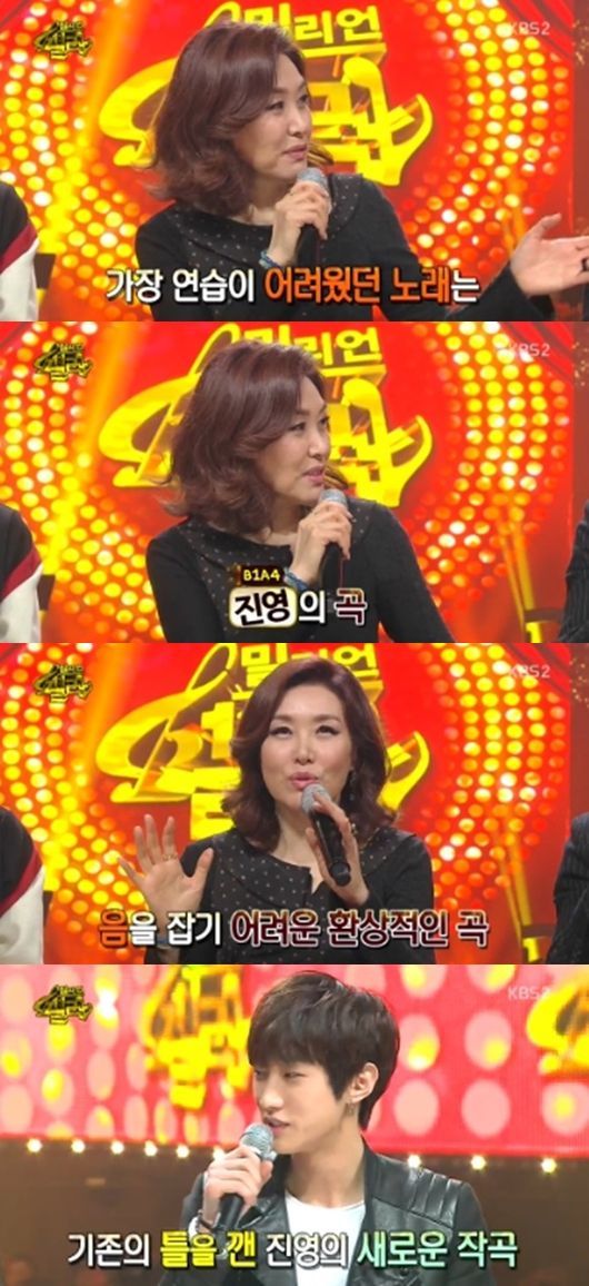 가수 주현미가 보이그룹 B1A4의 진영이 만든 노래를 연습할 때 제일 어려웠다고 밝혔다.