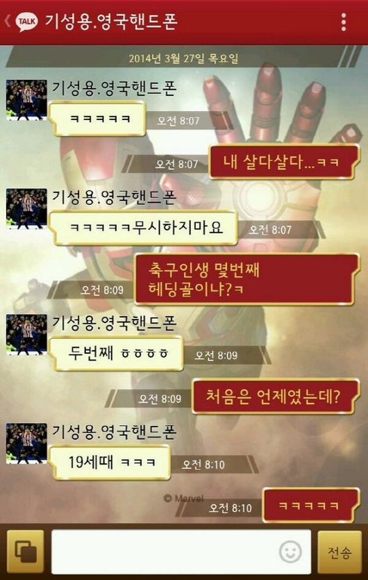 이 아나운서는 27일 자신의 트위터를 통해 "기성용 선수 리버풀전 골이 축구 인생 두 번째 헤딩골이라네요. 2007년 6월 U-20 부산컵 코스타리카전 이후 무려 7년만. 프리미어리그에서 기성용의 헤딩골을 보는 날이 오다니…"라는 글과 함께 기성용과 스마트폰 모바일 메신저로 주고 받은 대화 내용을 공개했다.
