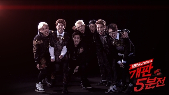 '블락비의 개판 5분전'은 블락비가 아이돌의 금기사항에 도전하는 모습을 담은 생방송 리얼리티쇼. 몰래카메라로 멤버들 간의 불화를 체크하기도 하고, 아이돌의 절대 금지항목인 연애를 몸소 실천하기 위해 깜짝 놀랄만한 상대와 소개팅을 할 예정이다.
