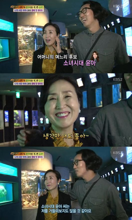 이에 김경진의 어머니는 “요즘은 소녀시대 윤아가 눈에 들어온다. 윤아 같은 며느리라면 정말 예뻐서 매일 손잡고 다닐 것 같다”며 “경진이가 좋은 인연을 만나서 일단 많이 사귀었으면 좋겠다.
