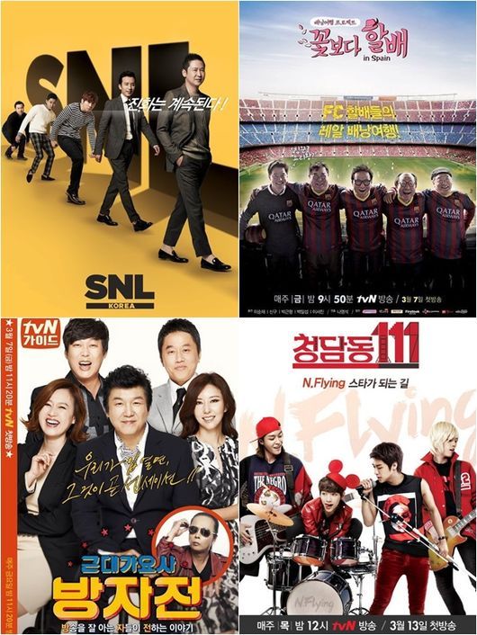 tvN은 지난 1일 새로운 시즌을 시작한 'SNL코리아 2014'를 시작으로 9일 '꽃보다 할배 시즌2', 13일 '청담동111-엔플라잉 스타가 되는 길', 14일 '방자전', 27일 '로맨스가 더 필요해'가 시청자를 새로 만났다. '막돼먹은 영애씨 시즌13'은 27일 첫방송이 예정중이다.