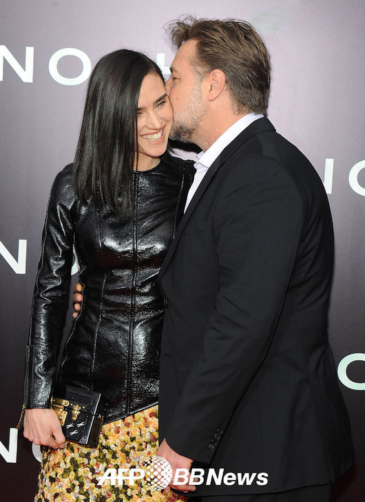 [OSEN=사진팀] 26일(현지시간) 미국 뉴욕 클리어뷰 지그펠드 극장에서 진행된 영화 '노아' 프리미엄 시사회에서 할리우드 배우 제니퍼 코넬리와 러셀 크로우가 포토월에서 포즈를 취하고 있다.