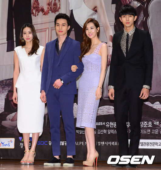 27일 오후 강원도 평창 알펜시아 리조트에서 열린 MBC 주말드라마 '호텔킹' 제작발표회에서 왕지혜, 이동욱, 이다해, 임슬옹이 포토타임을 갖고 있다.