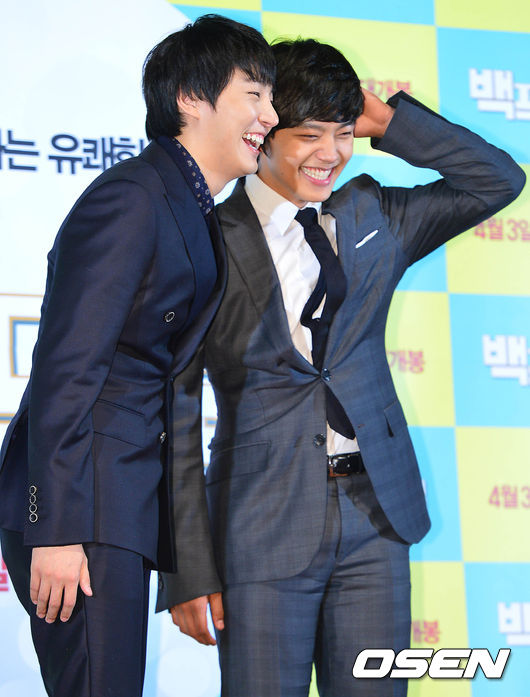 배우 윤시윤과 여진구가 27일 오후 서울 자양동 롯데시네마 건대입구에서 열린 영화 '백프로'(감독 김명균) 언론시사회에 참석해 포토타임을 갖고 있다.