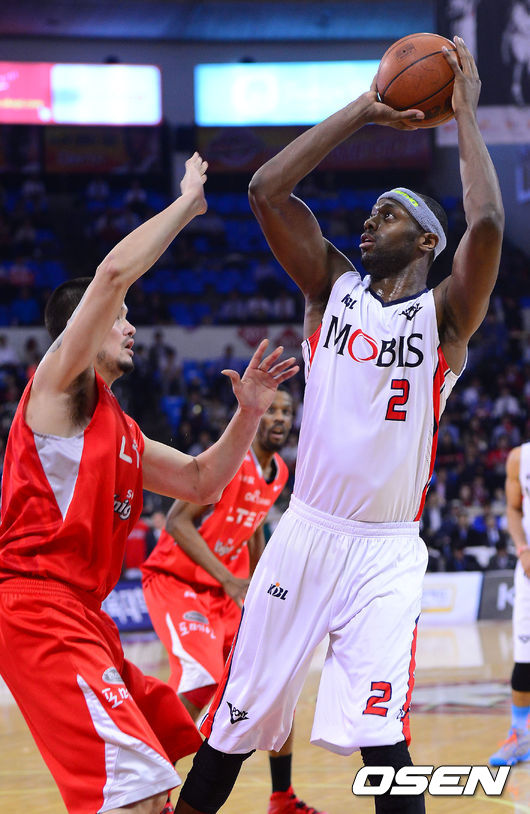 1쿼터 모비스 벤스이 점프슛을 시도하고 있다.
